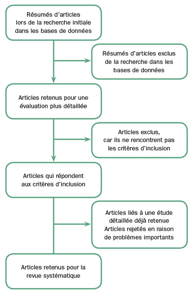 Figure 1 : Processus de sélection des articles retrouvés dans les bases de données selon les critères d’inclusion